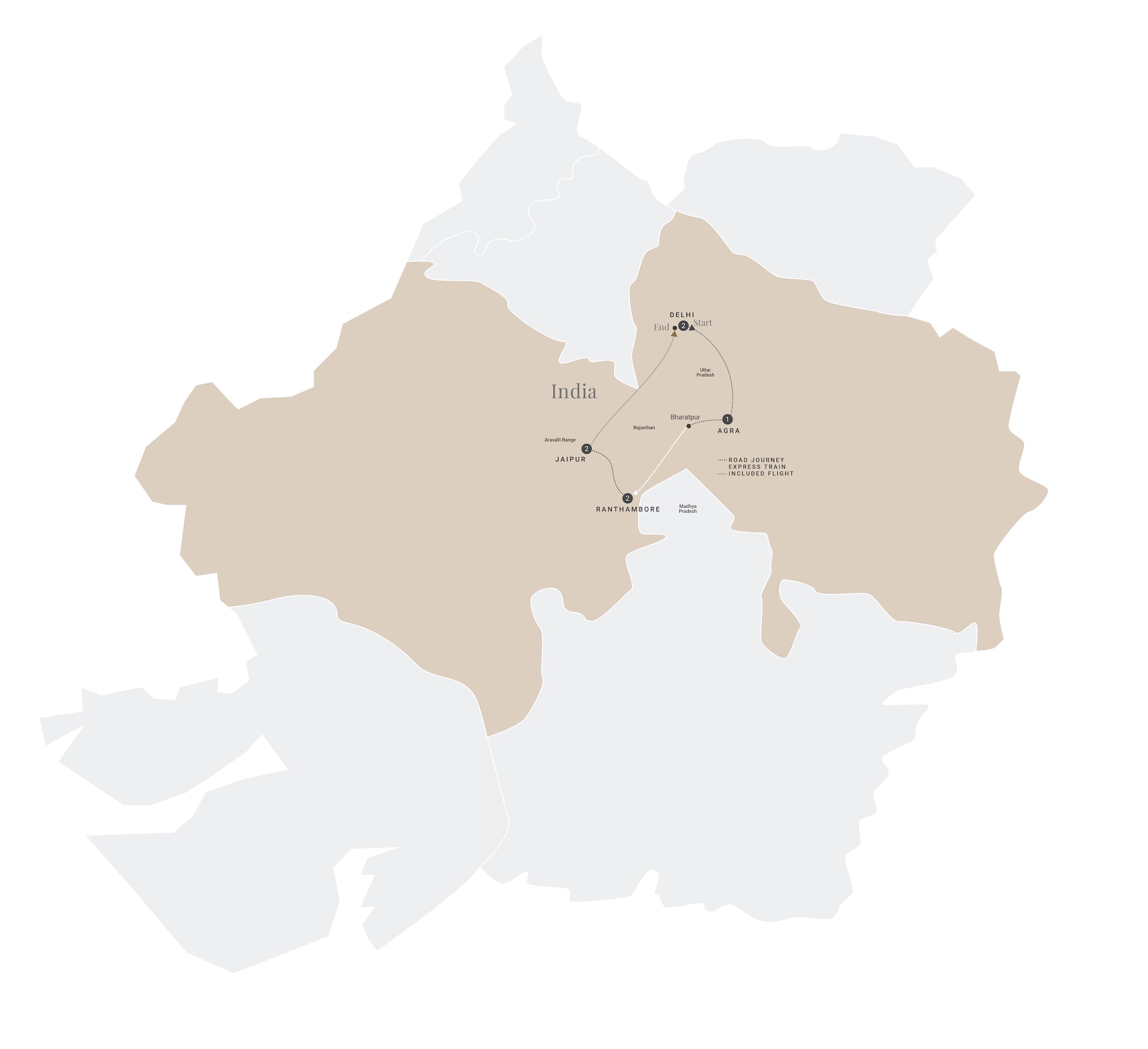 - Ranthambore: Sit back and relax on the express train from Bharatpur to Ranthambore. Enjoy the scenic vistas of northern India as you are transported door-to-door in just a few hours. Experience the quickest way to travel in India, as small villages and plantations whizz by.